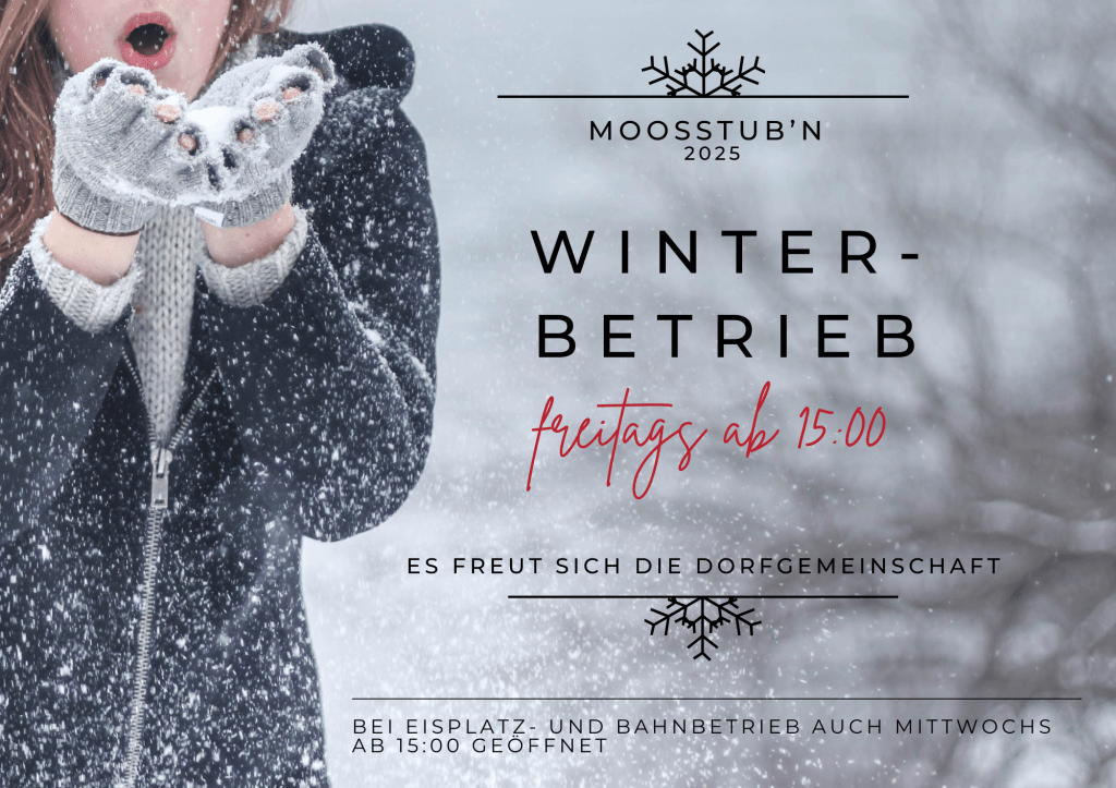 Aufgrund der rechtlichen Rahmenbedingungen haben wir uns im Vorstand der Dorfgemeinschaft entschlossen, zum Schutz unserer treuen Besucher bis auf Weiteres auf einen Winterbetrieb zu verzichten. Wir haben die Bande mit vielen fleißigen Helfern zwar aufgebaut, aber sollten sich die rechtlichen Bedingungen in absehbarer Zeit nicht massiv ändern sehen wir uns leider auch gezwungen, den Betrieb des Eislaufplatzes bis auf Weiteres ebenfalls NICHT aufzunehmen. In direktem Zusammenhang mit der Moosstube steht die Betreibung der Eisbahn. Auch hier hat sich der Vorstand einstimmig dazu bekannt, den Betrieb der Eisbahn bis auf Weiteres ebenfalls NICHT zu starten.